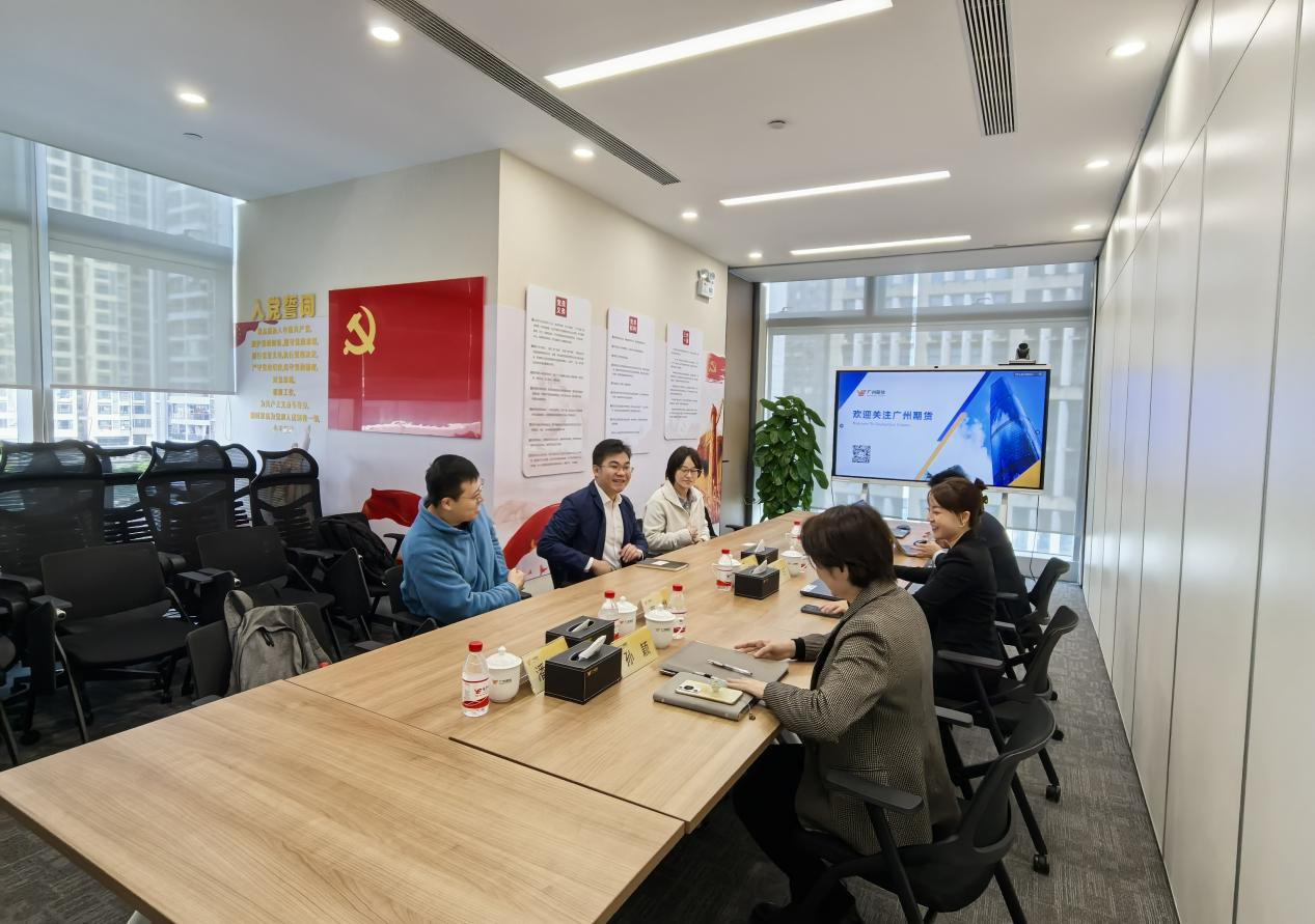 调研交流会在广州期货总部会议室举行,广州期货副总经理杜琼女士、工会主席孙颖女士、综合部总经理郑伟一先生等公司领导热情接待了商学院教师团队。会议伊始,郑伟一总经理首先向商学院教师团队详细介绍了广州期货的发展历程、业务布局及未来规划。他提到,广州期货自成立以来,始终秉承稳健经营、创新发展的理念,不断拓展业务领域,提升服务质量,现已成为期货行业中具有影响力的企业之一。展望未来,广州期货将继续秉持开放合作的态度,积极寻求与高校等机构的合作,共同推动期货行业的繁荣发展。