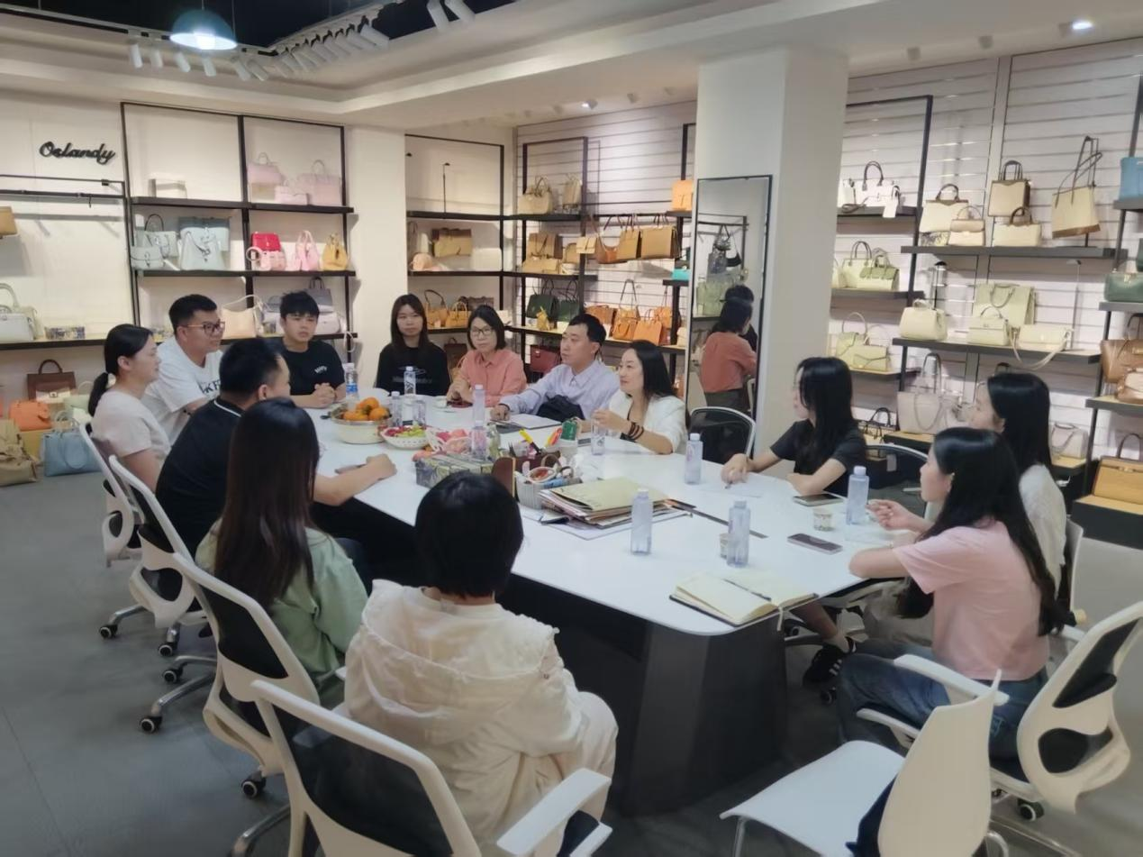 参观完产品,师生团队在缪总经理的指引下进入座谈会。缪总经理首先对欧诗兰黛皮具的发展历程进行介绍,并对其公司注重专利申请、品牌打造的营销理念进行介绍。缪总经理表示,希望学院能够为企业推荐优秀的人才,欧诗兰黛皮具也愿意培养学校推荐过来的毕业生。