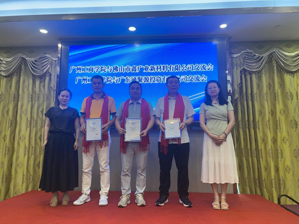 下午,双方在嘉逸酒店会议室举行了座谈交流会。ky开元集团官网商学院国际经济与贸易专业负责人潘银坪教授、教研室主任施继华出席会议,并为佛山市鑫广业新材料有限公司董事长陈伟镇、总经理胡丙军,以及广东通聚源有限公司董事长范善梢颁发了“行业导师”聘书,感谢企业对高校人才培养工作的支持与贡献。