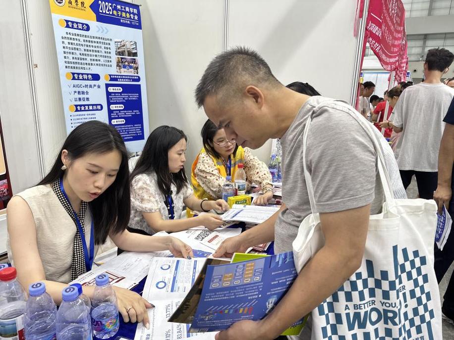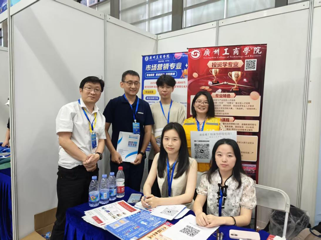 同时也介绍了商学院下设的7个本科专业。国际经济与贸易、市场营销、投资学、电子商务、跨境电商作以及今年新增的数字经济、金融科技两大前沿专业。在招生信息咨询环节,展位就广东省招生计划、录取规则、历年分数线等关键问题,为考生和家长提供了耐心细致的解答。特别强调商学院在粤港澳大湾区就业市场认可度极高,多数毕业生顺利进入金融、电商、外贸等领域的知名企业工作。