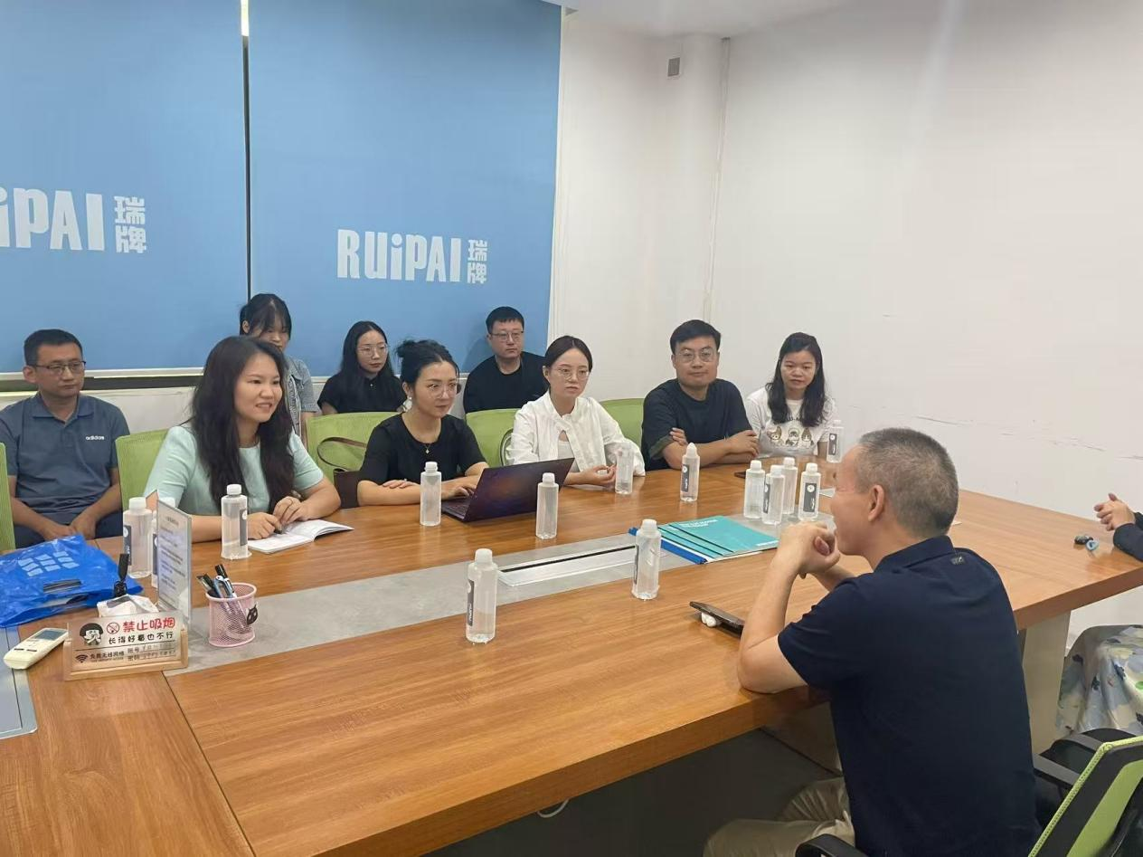 随后,合作交流会议在热烈融洽的氛围中正式召开。孙水鹅博士结合商学院数字经济专业建设特色与人才培养目标,以行业发展趋势和企业实际需求为导向,详细阐述了深化产教融合的具体思路,提出通过“课程共建、师资互聘、实践共促” 的模式,推动教学内容与产业技术同步更新。王玙璠老师则聚焦企业用工需求,针对箱包行业在数字化营销、供应链管理等领域的人才缺口,就课程体系优化、实践教学模块设计等方面提出了建设性建议。双方围绕企业运营中的实际痛点,就如何让课程设置更贴合箱包行业数字化转型需求、如何通过实践教学强化学生动手能力与岗位适配度、如何搭建实习实训平台实现校企项目无缝对接等问题展开了细致探讨。