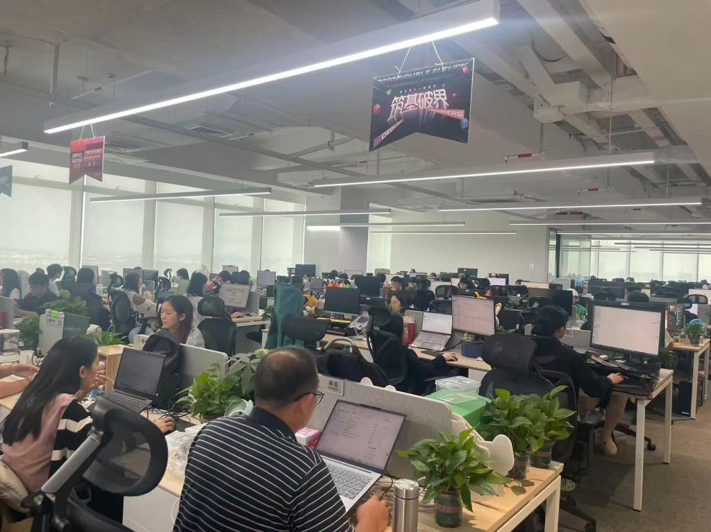 在企业方的引导下,老师们首先参观了广州总部七层办公区,走进实景直播间、开放办公区、创意工位与健身房,近距离感受青木科技年轻、创意、高效的文化氛围。