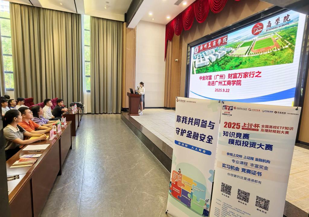 讲座由投资学专业主任谢桂珊、副主任高桦及唐琰老师共同主持。中金财富证券有限公司广州天河路营业部财富顾问团队总监梁文挺、投资经理陈海峰作为主讲嘉宾,为在场师生带来了一场关于财富管理与ETF投资的深度解析。