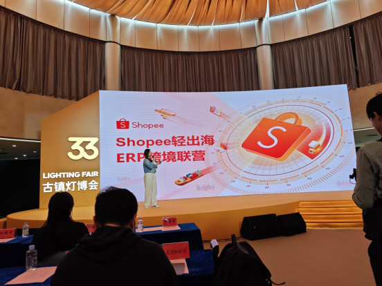 活动在中山灯饰博览会现场举行,议程紧凑而充实。从TikTok Shop、Shopee、亚马逊中东站,到Coupang等多平台代表,分别围绕“内贸商家出海”“轻出海联营模式”“中东市场机遇”及“新蓝海平台战略”展开分享,内容覆盖市场趋势、运营策略与技术赋能,为学生呈现了一幅完整的灯饰出海图景。