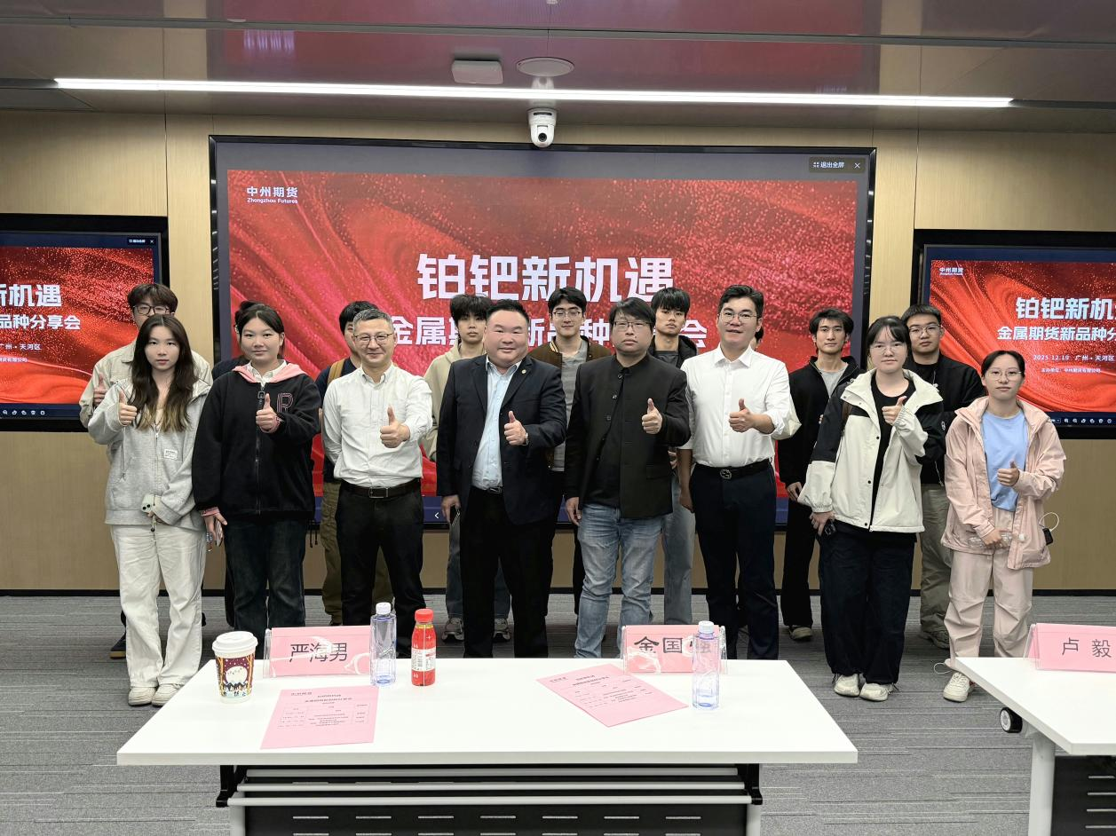 2025年12月19日,为深化投资学专业理论与金融实务的融合,ky开元集团官网商学院24级投资学(私募基金班)全体学生走进中州期货有限公司广州分公司,参与“铂钯新机遇——金属期货新品种分享会”,以企业探访的形式,沉浸式学习期货新品种知识与产业风险管理实践。