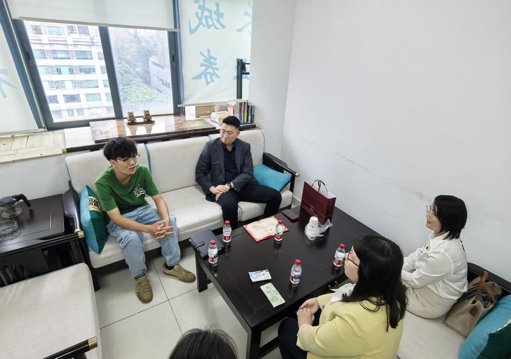 谢桂珊主任首先代表学院,向长城证券长期以来对学院人才培养工作的大力支持表示衷心感谢,并亲切看望了正在参加专业实习的2023级学生曾海鹏。曾海鹏同学谈到:“在实习的这段时间里,真正直观地感受到了证券从业者的工作,不像是我印象中对着电脑屏幕对着技术形态的分析。最主要的还是服务客户、了解客户需求,还有接触了解更多的信息,不单单从技术形态上分析个股,更多的从信息面上了解整个行业,推测行业的发展方向和趋势。这段时间接触最多的是投顾老师,每次上班的早上都能听到投顾老师的侃侃而谈,从国内市场到国际环境,从历史经验到未来方向,很多都是我没有在我思考过的范围里面,很大程度拓宽了我对市场判断的渠道。最近和投顾老师交流也收获了很多感想,反思了自己以前的投资习惯有很大的误区,让我感觉到要成为一名真正的投资者,应该跳出原来的投机心理,真正地去探索市场方向、洞察市场变化。”谢主任对曾海鹏同学的成长与蜕变感到欣慰,勉励他珍惜实习机会,虚心向企业导师请教,在实战中锤炼过硬本领。