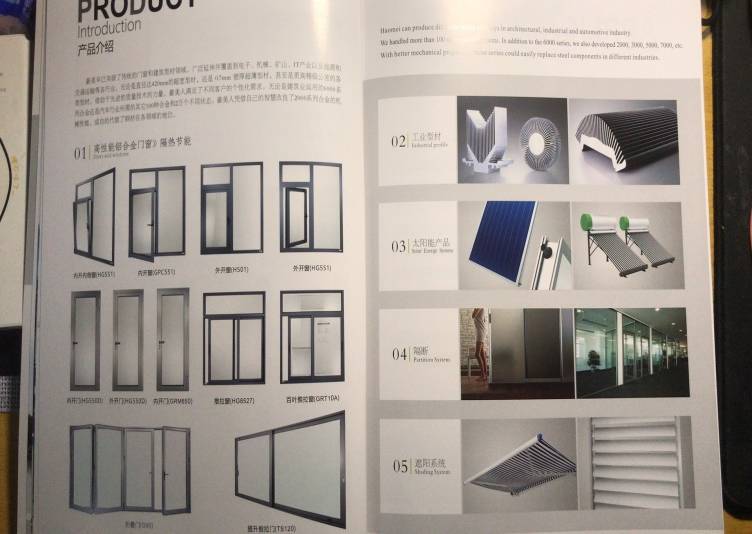 讲解员介绍说集团可生产各类建筑型材、工业型材和装饰型材、特殊合金牌号及特殊规格的铝型材产品。豪美新材已不局限于普通铝型材的生产,重点打造、环保节能铝型材;产品品种已逾万种,其中工业型材广泛运用在通讯、LED、机械、汽车、电脑科技、船舶运输、航空航天、地铁轨道及耐用消费品电器等多个行业和领域,建筑型材也已使用在各地建筑物上,尤其是作为广州地标的“高塔”——广州新电视塔,使用豪美铝业的铝型材产品。豪美铝业生产的铝材得到欧美等地区的认可并建立合作关系,出口量位于同行前列,产品品质得到了客户和社会的认同。