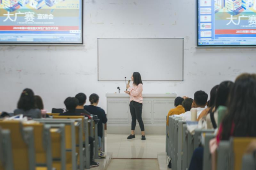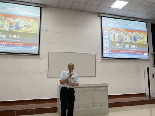 两位教授发言后,龚舒慧老师采用了图文并茂的方式向大家讲解全国大广赛的详细内容,一步一步引导大家深入了解这次比赛急需注意的事项。包括了大广赛的比赛流程、参赛者报名的步骤等。随后向我们展示了往届获奖的不同形式的作品,根据这些案例作品介绍了不同的形式作品具体的参赛规则和要求。