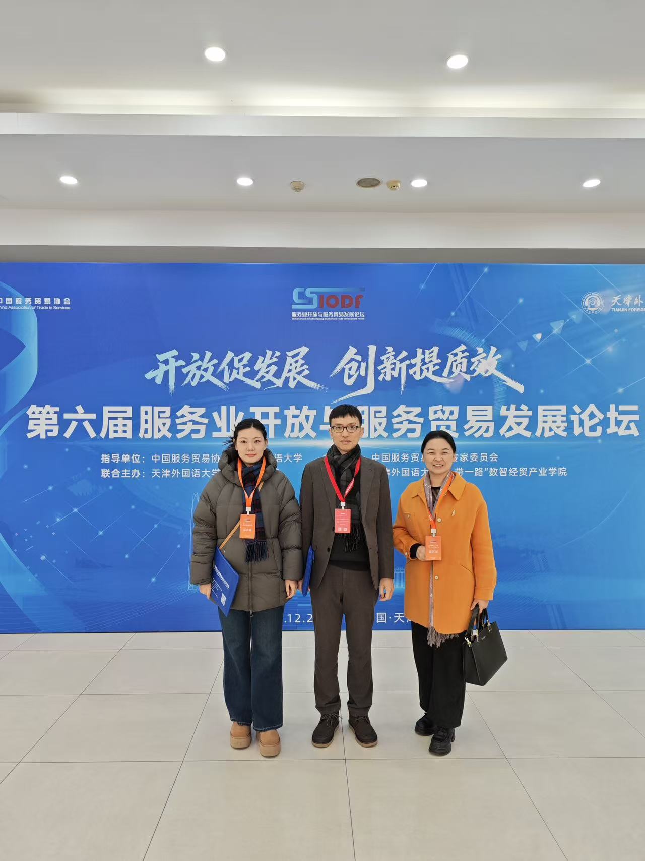 2025年12月26-29日,商学院副院长关建波副教授,以及国际经济与贸易专业负责人鲁朝云副教授、青年教师白雪博士,前往天津外国语大学参加由中国服务贸易协会举办的第六届服务业开放与服务贸易发展论坛暨中国服务贸易协会专家委员会第五届第二次会员大会。