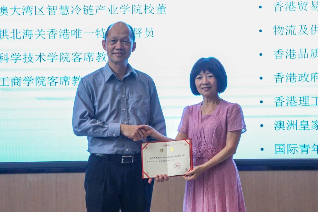 2022年6月15日(周三)下午三点,商学院“学术探索”讲座第十三期于花都校区图书馆416报告厅顺利举行。本次讲座邀请了广东省港澳台高层次人才、广东省冷链标准化工程技术研究中心副主任、粤港澳大湾区冷链物流标准创新联盟专家委员钟鸿兴教授主讲,主题为“跨境电商赋能国际贸易变革”,出席本次讲座的嘉宾有易露霞副校长、商学院院长林波博士、副院长程振锋博士、广东省冷链标准化工程技术研究中心执行主任任锦辉、通识教育学院院长黄鹏。商学院电子商务、国际经济与贸易专业学生代表共140人到场聆听讲座。