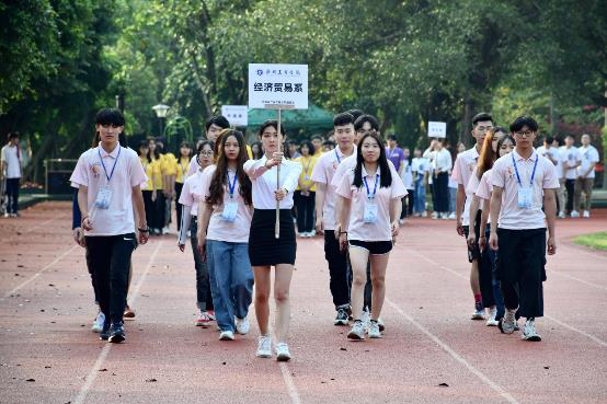 开幕式中最大亮点是团学代表方队的出场,经贸系代表方队经过主席台时响亮的口号——“乘风破浪,经贸最棒,所向披靡,经贸无敌。”展示了经贸系不畏艰险,乘风破浪的精神。