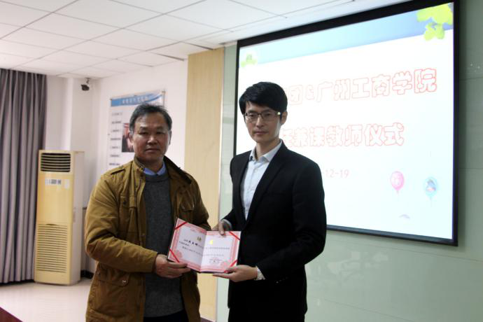学院科研处长为吴玉明副董事长颁发聘书