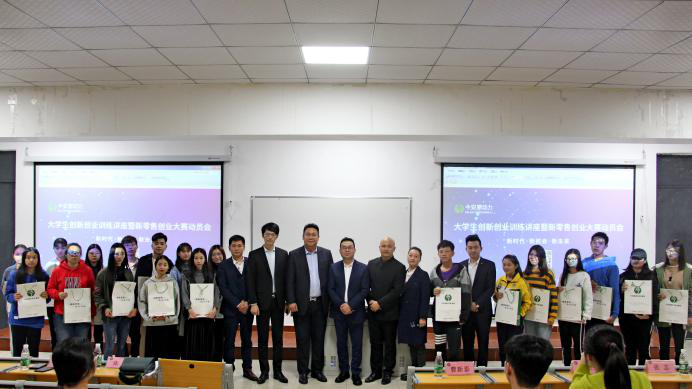 第二部分活动:大学生创新创业训练讲座暨“新零售”创业大赛动员会在教学楼417教室进行。今安集团曹新泰董事长与在座同学分享自身创业经历并提出将结合集团推出的“万家灯火”项目为ky开元大学生提供创业机会培养青年创业家;吴玉明副董事长为学生分享了成功创业的案列,其强调高度的执行力是成功的关键因素,劝导同学们珍惜时间,并对明年的创业大赛提出展望。埠梵教育创始人陈海标先生,分享其创业之路,强调大学生在创业路上要学会艰苦奋斗,锻炼自身的心理素质,树立高远的创业信念。会后,张娜副主任随机抽取现场同学获得今安集团赞助的礼品。