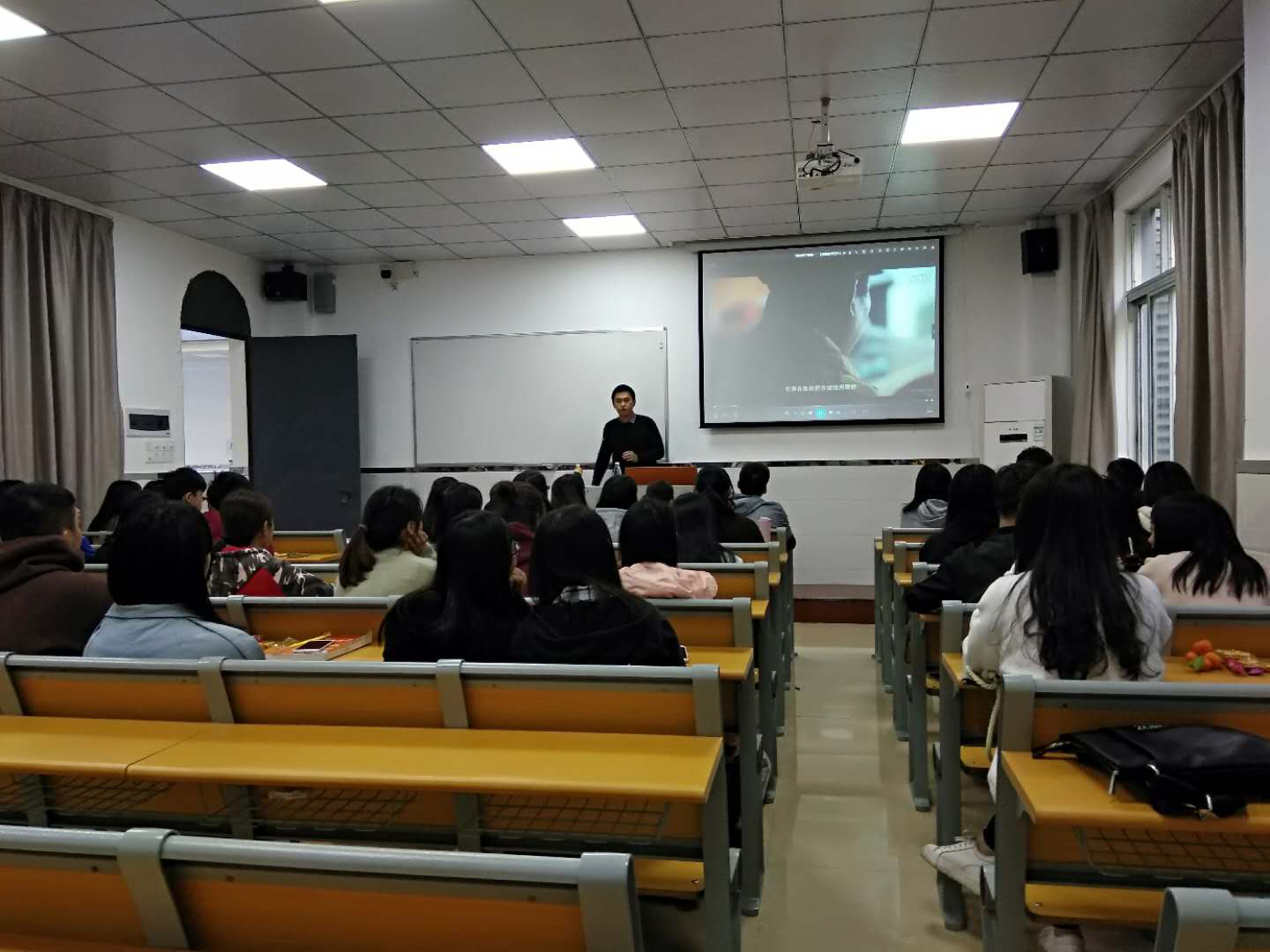 座谈会上全佺老师跟同学们讨论了关于做人的诚信、道德的问题,在最后,提出了两个问题,一是励志奖学金对自己的帮助、二是如何回报国家,三名同学认真地回答了问题并说出自己的未来规划。