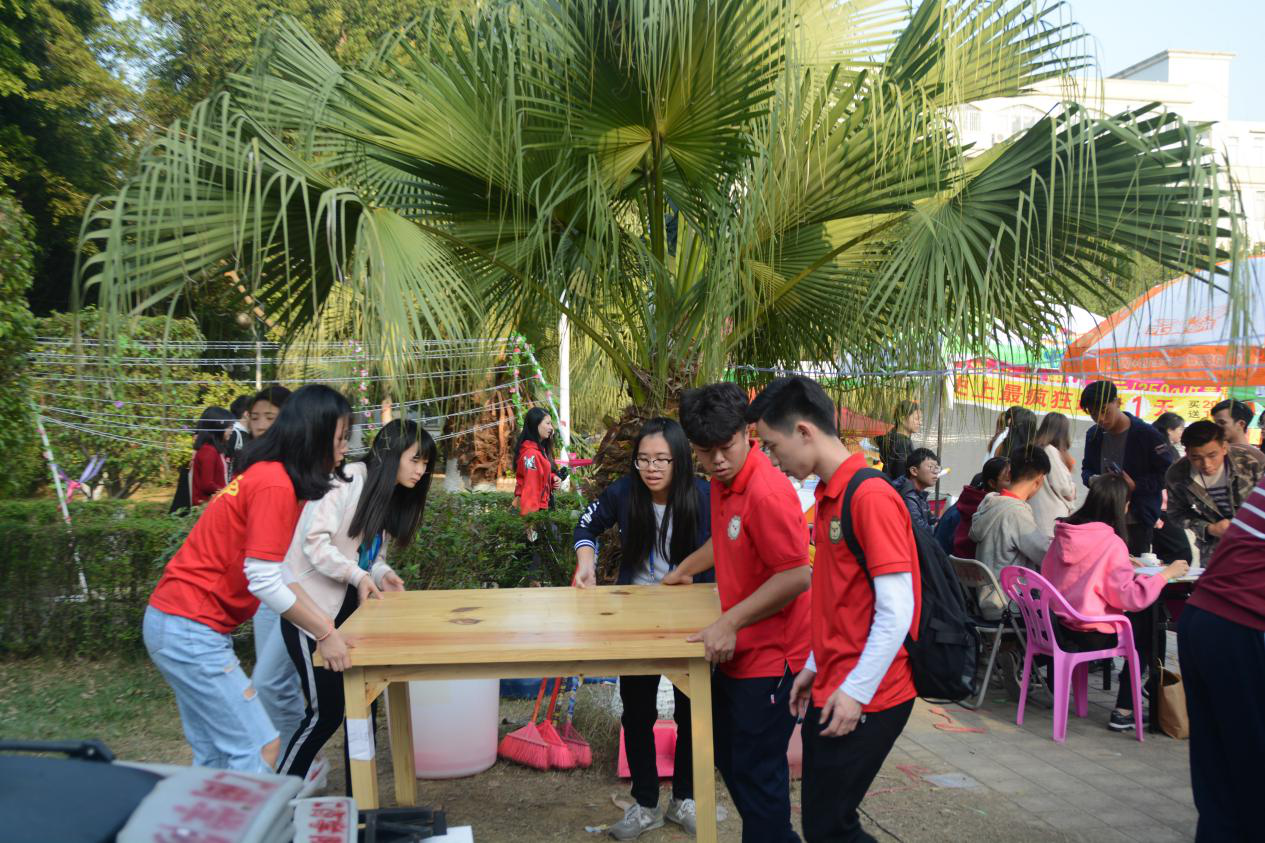 在模拟经营节举办过程中,有一群人每天都坚守在自己的岗位,为各个摊位搬桌子及椅子,维护现场秩序,他们就是经贸系团学的各干部以及干事。活动前布置广场,开幕式负责围场,每一天记录各摊主租借桌椅情况,结束后清洁打扫现场。他们任劳任怨,只希望能够为各同学提供一个安全舒适的环境。在此,祝贺经济贸易系第十四届模拟经营节圆满成功!