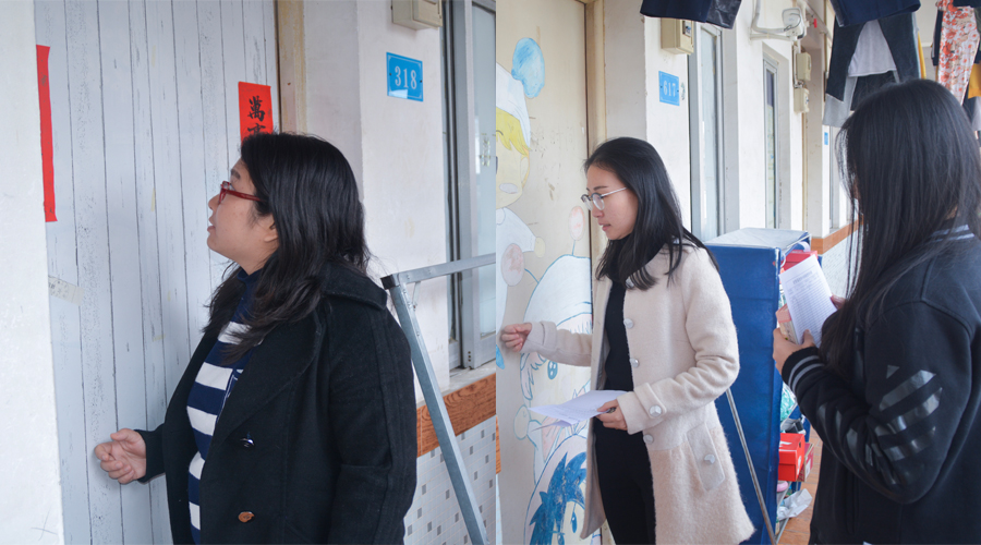 方韵诗、王硕老师正在检查宿舍