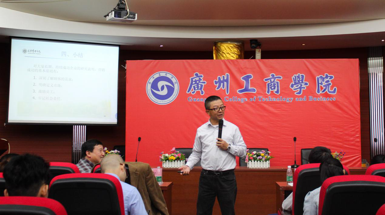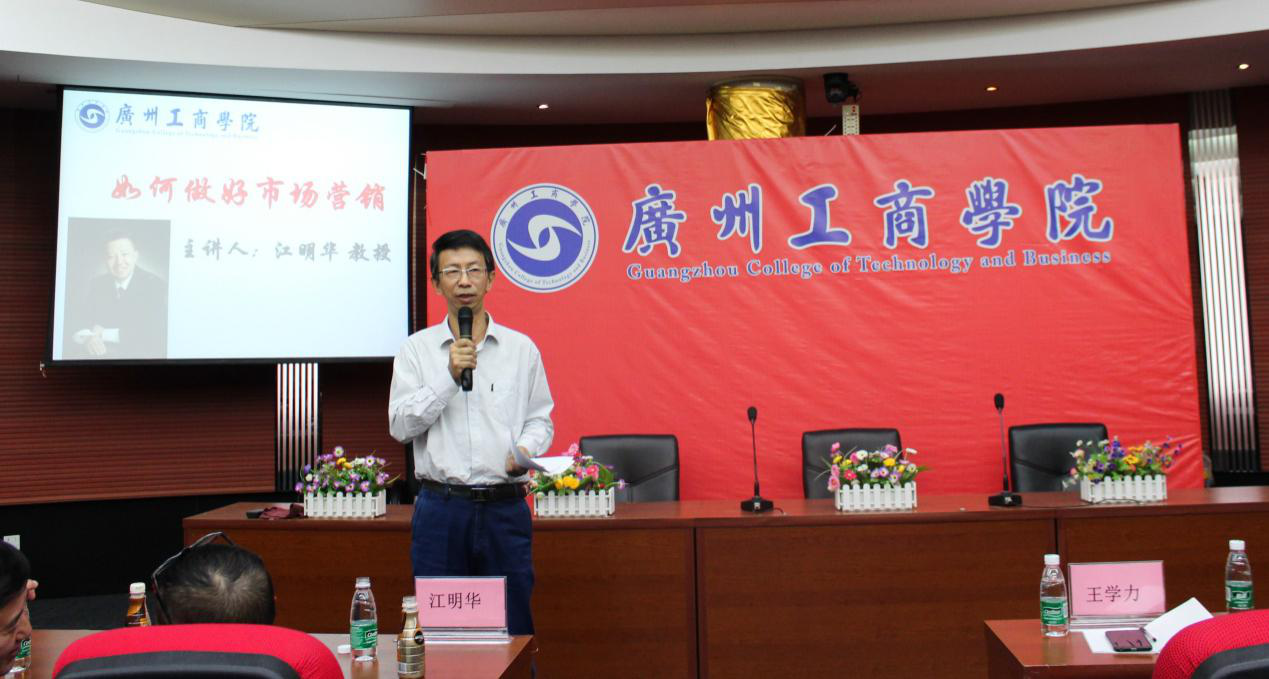 ky开元有幸邀请北京大学光华管理学院江明华教授于2017年11月10日下午莅临ky开元花都校区教学楼7楼报告厅进行“如何做好市场营销”的讲学。