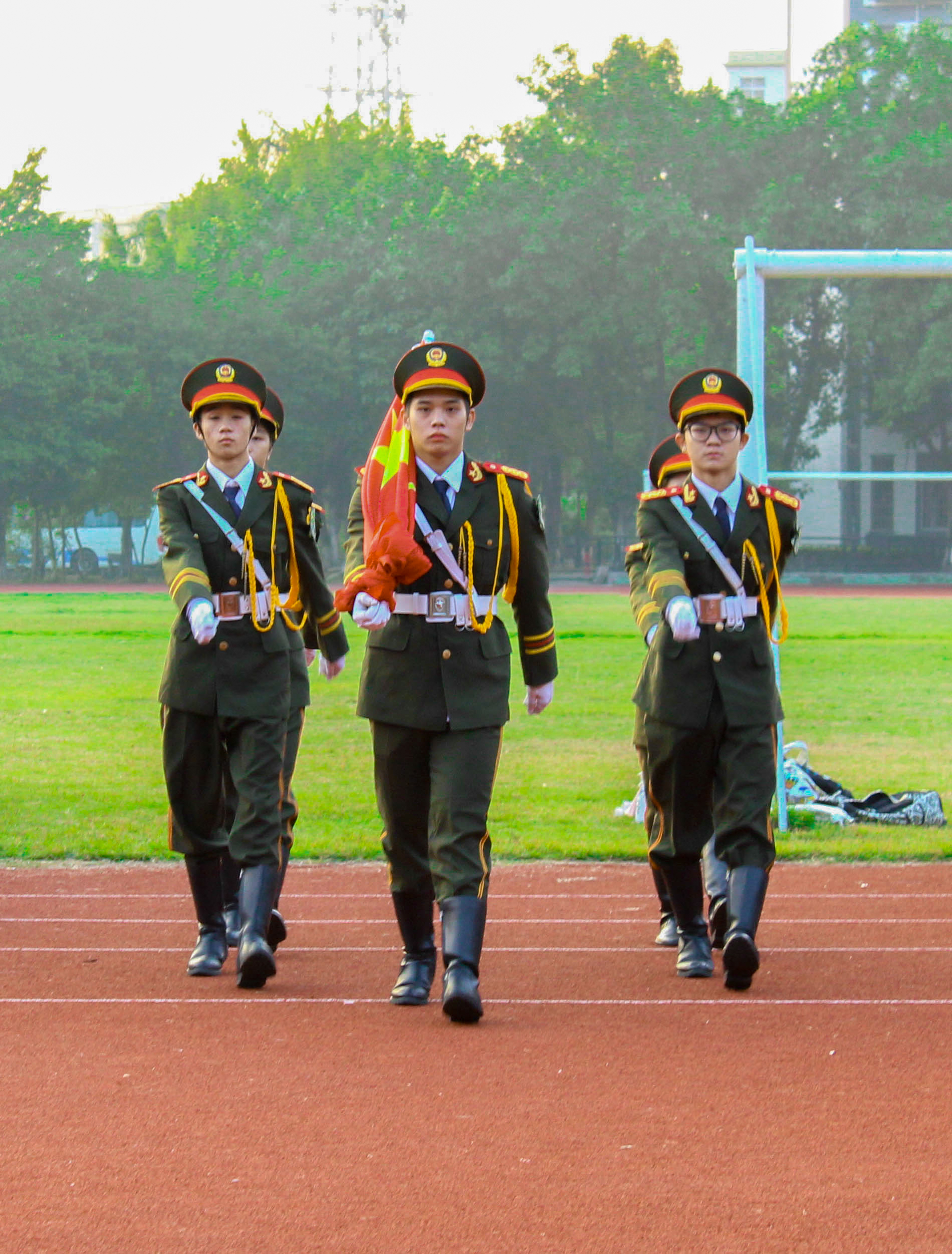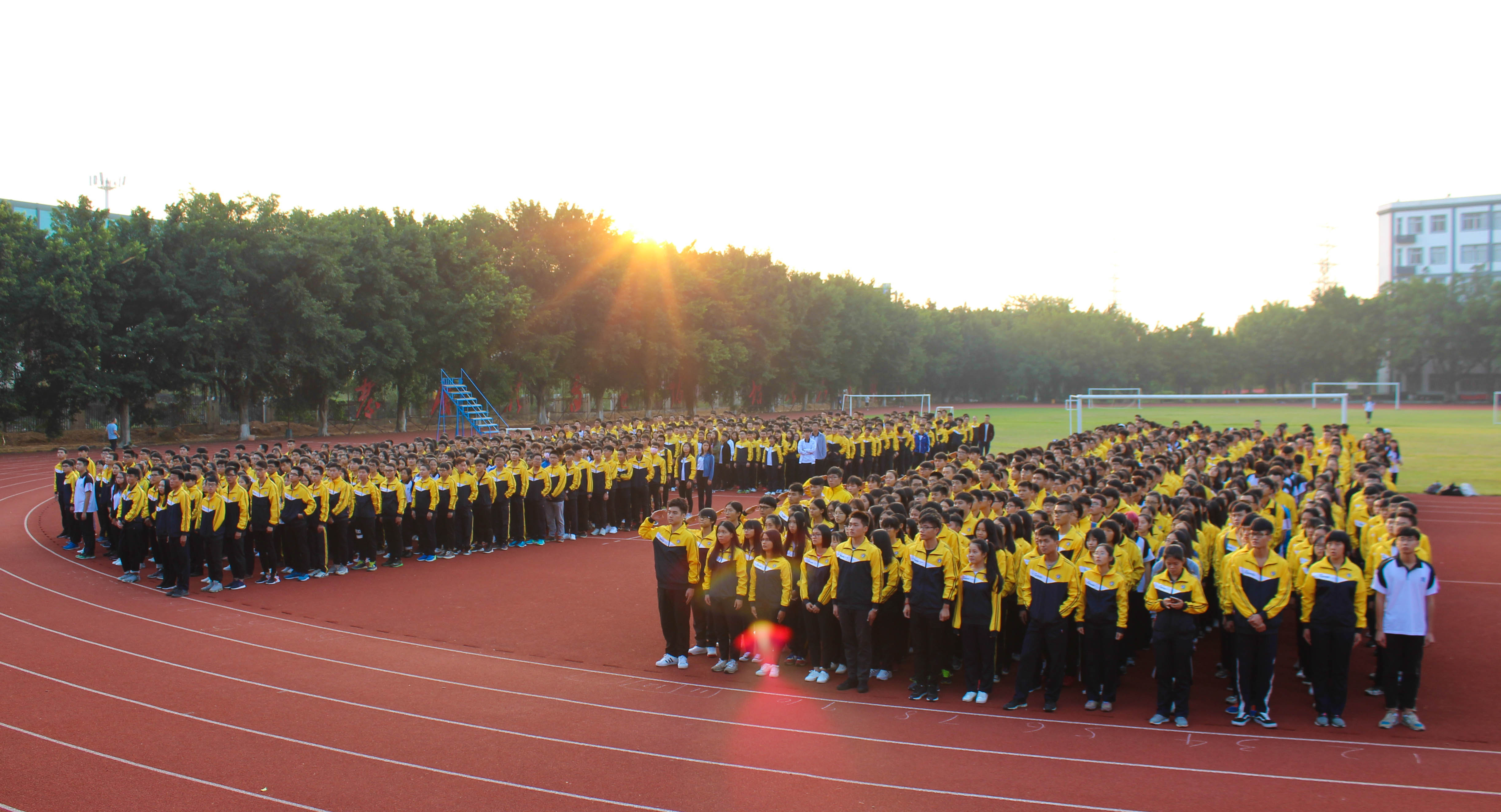 2017年10月23日早晨,全体17级经贸系同学于ky开元花都校区田径场上进行入学以来首次升旗仪式。