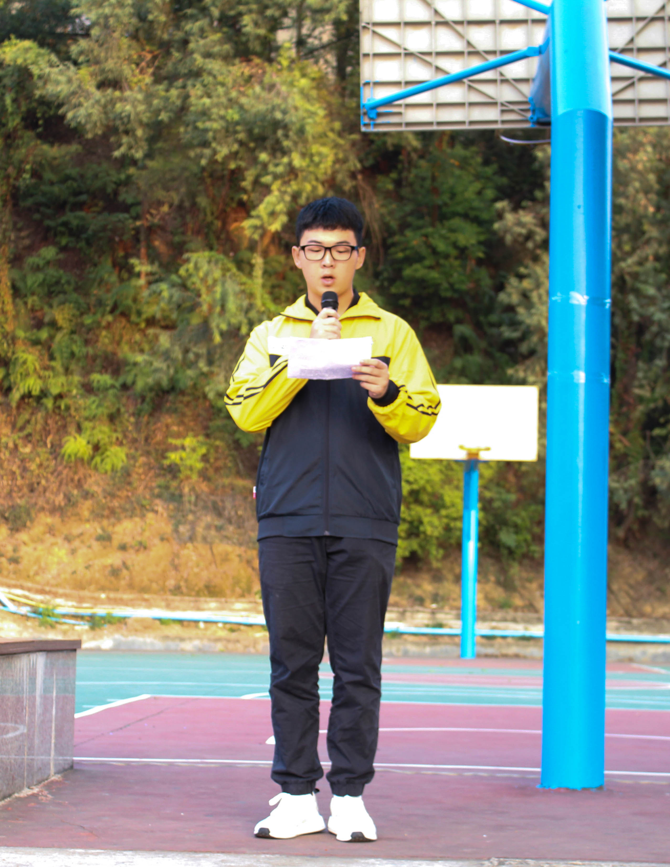 第一项议程开始,全体同学整齐有序的入场,各工作人员及班委于6:30快速且有条理地将各班级队伍整理完毕并开始等候升旗仪式开始。