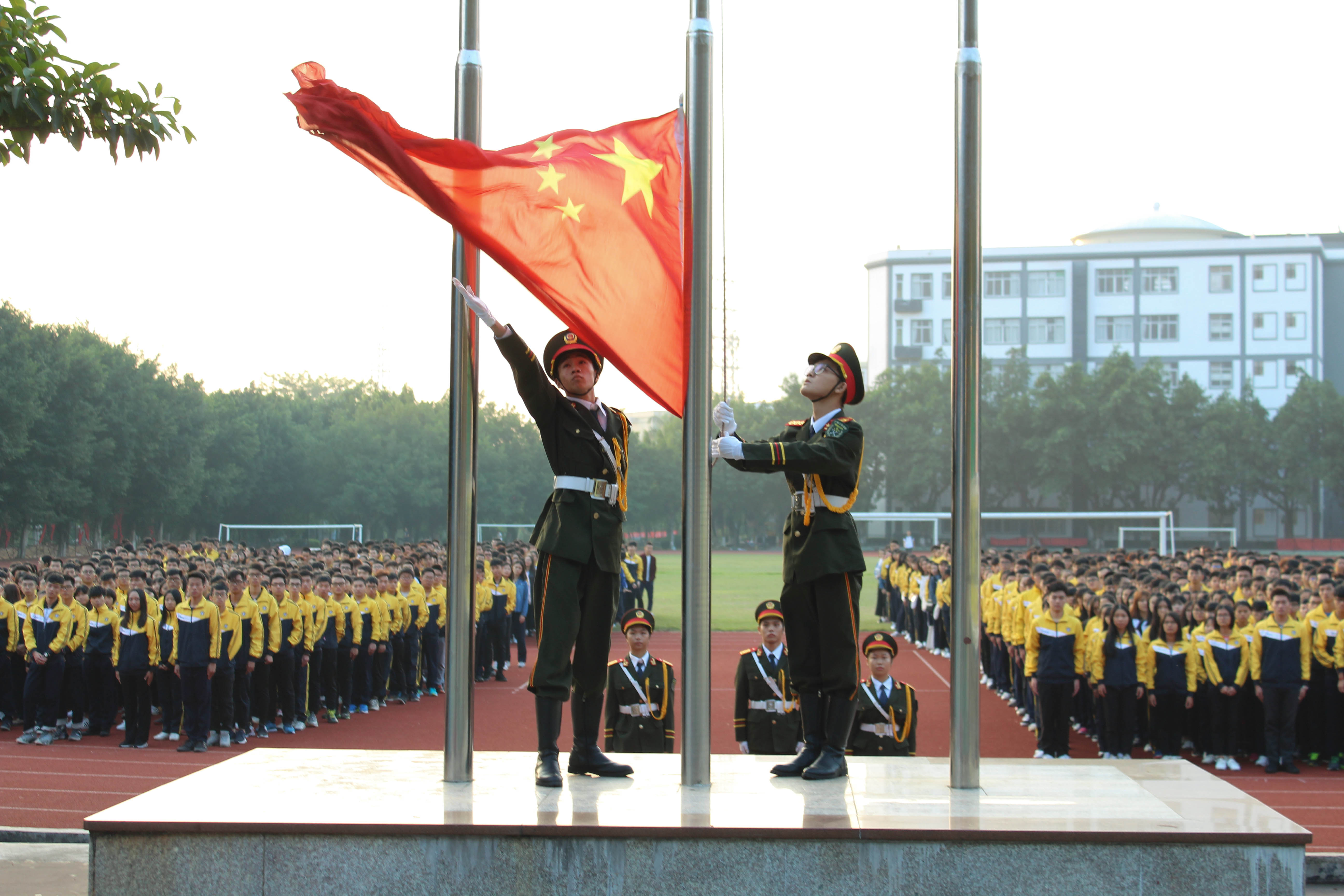 升旗仪式进行时