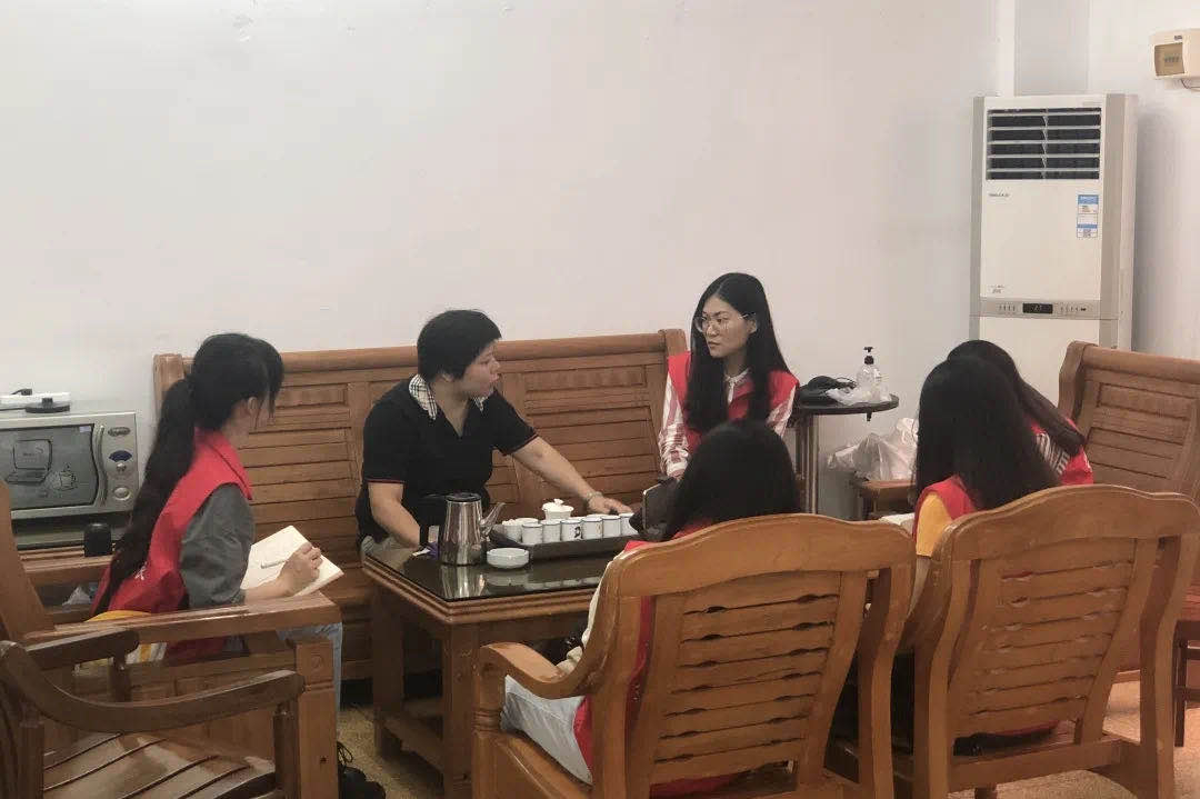 心冉梦志愿服务队首先来到了潮州市湘桥区人民政府大楼,在区团委钟敏书记的介绍下,对潮州当地非遗文化的机构设置和各部门职能有了一定的了解,并在区团委的引荐下来到了湘桥区旅游文化体育局,其工作人员陈宇星向团队全面地介绍了目前的非遗文化保护政策,从政策的颁布到落实,让团队成员对潮州木雕的保护现状有基本的了解,也更加全面细致地认识潮州非遗文化的保护和传承相关工作。