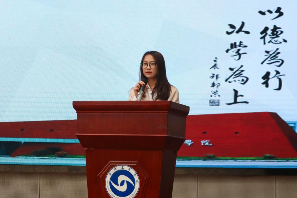 颁奖环节过后,由国家奖学金获得者代表黄梓眉同学发言。她提到,国奖的设立代表国家对大学生的鼓励和期待,也是对大学生全面发展的一个体现。她用自己的事实告诉我们,人生没有不确定的未来,只有坚持不懈的努力。请相信只要你努力,梦想就会实现。