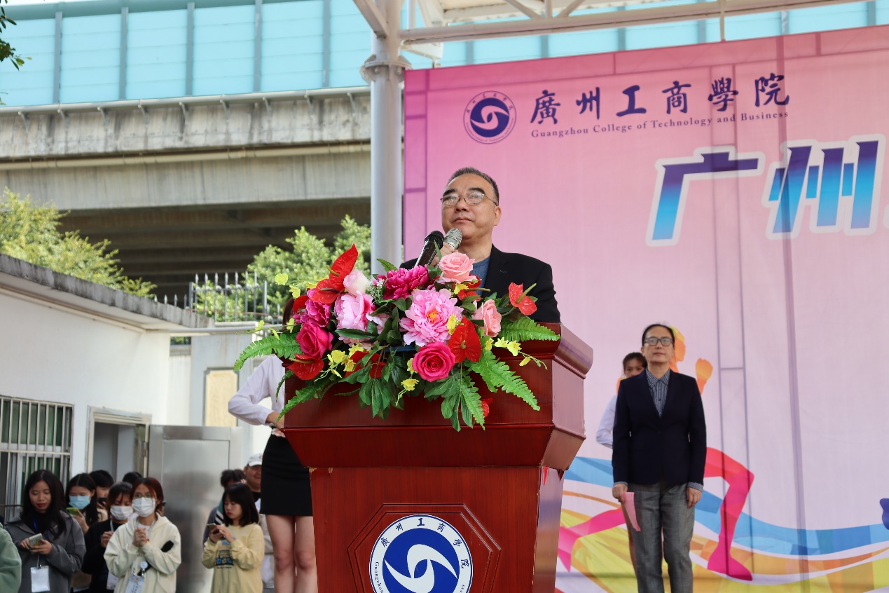 朱特威副院长为本次校运会致开幕词。朱特威副院长指出校运会的举办是贯彻党的教育方针,践行“德学五进”之“进体育馆”的要求,是大力推进素质教育的重要体现,也是ky开元师生精神风貌和综合素质的集中展示。最后预祝本届运动会取得圆满成功。