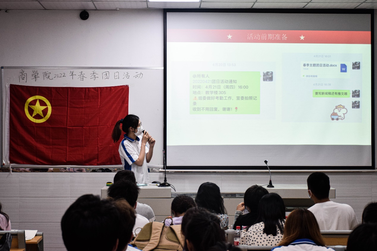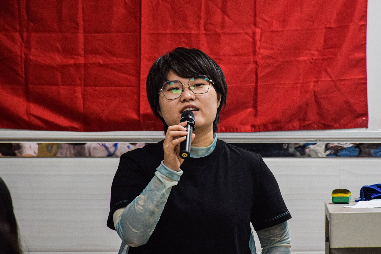 活动伊始,先由于佩鑫老师进行开场发言。她提到了“2022年我们建团的一百周年,是一个喜庆之年,作为新时代的青年,我们要更爱我们的伟大祖国,热爱我们自己的家乡,为了自己的梦,复兴梦,中国梦的实现贡献自己的青春力量,做到功成不必在我,功成必定有我”。