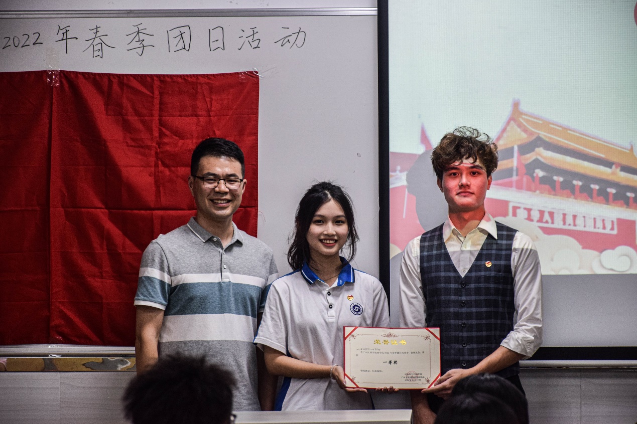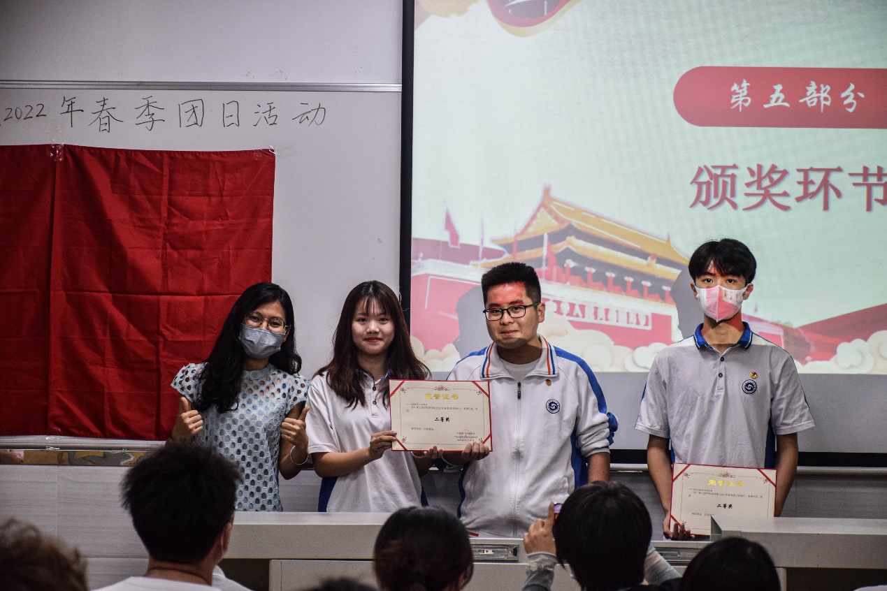获奖的主题团日活动班级代表。在团日活动分享会的活动上,各个班级的演讲精彩逼人,各有春秋,最后经过在场的评委老师根据各个演讲者的表现和内容精彩性给予了评分,并由老师颁奖给予选手鼓励。