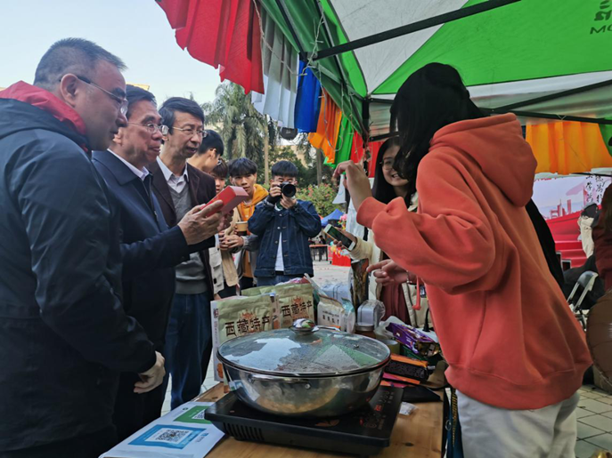 开幕式结束后,学院各位领导参观各摊位。张振超书记在采访中表达出对本次模拟经营节的肯定,希望学生们都能在此次经营节中有所收获。