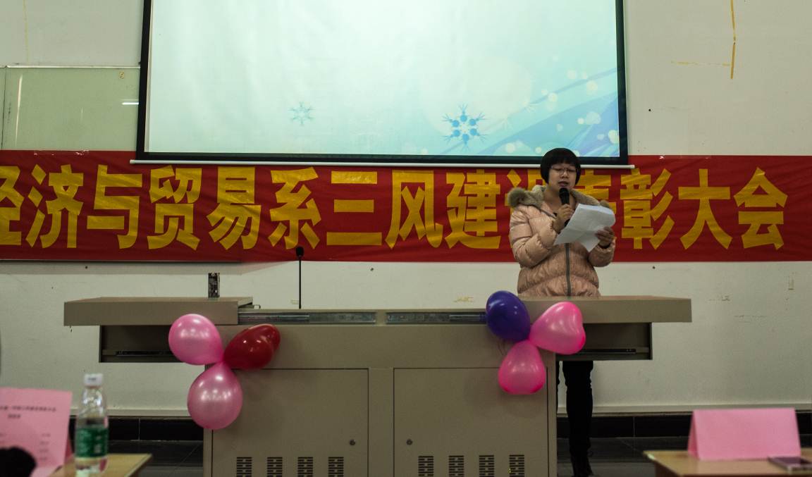 1217日下午2点,经济与贸易系2015-2016学年第一学期“三风建设表彰大”会在教学楼517举行。经济与贸易系主任易露霞教授, 经济与贸易系副主任李习纯副教授, 经济与贸易系副主任马超平老师,经济与贸易系办公室主任黄享政老师以及经济与贸易系辅导员老师出席会议。