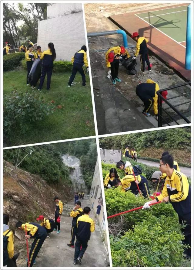 校园清洁第三站——教学楼四周,经过一个多小时的努力,平日随处可见的垃圾,已经消失在我们的视线里,同学们脸颊带着汗水的笑容,犹如春日初生的太阳,满的阳光与希望。在夕阳的照耀下,我们结束了我们的公益清洁,虽然打扫过程中充满了汗水与辛苦,但我们收获更多的是感恩与公益虔诚的心。从活动中,大家学会了付出,收获了付出的喜悦,并真真正正体验一次“感恩之旅”。