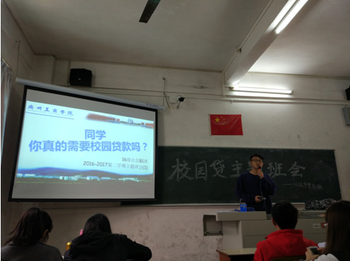 经济贸易系16级市场营销B1班,于2017年3月6日下午2:30,在教学楼210举行第二学期第一次班会——校园贷主题班会。