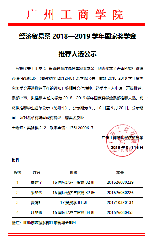 附:经贸系2018-2019学年国家奖学金评审公示!
