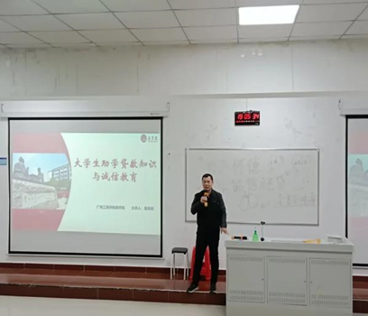 在讲座开始前,黄享政老师放了一首音乐,把气氛调节上来,同学们迅速进入状态,详细介绍了诚信还贷的重要性,比如在学校官网、微信公众号、学生群等相关信息,提醒毕业生及时还款,避免逾期产生不良信用记录。
