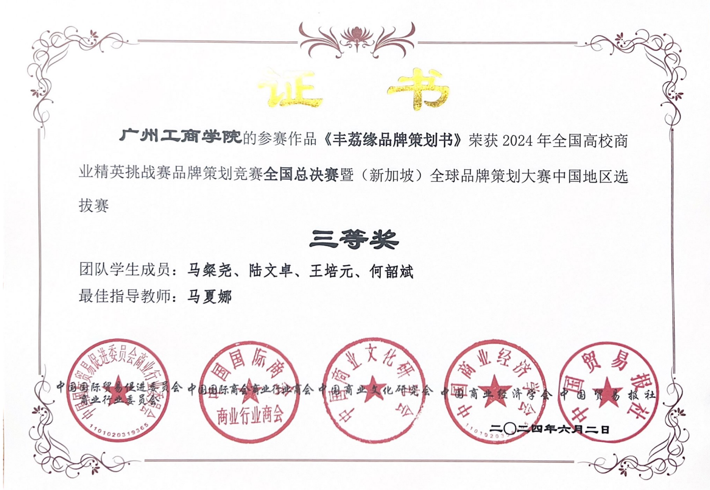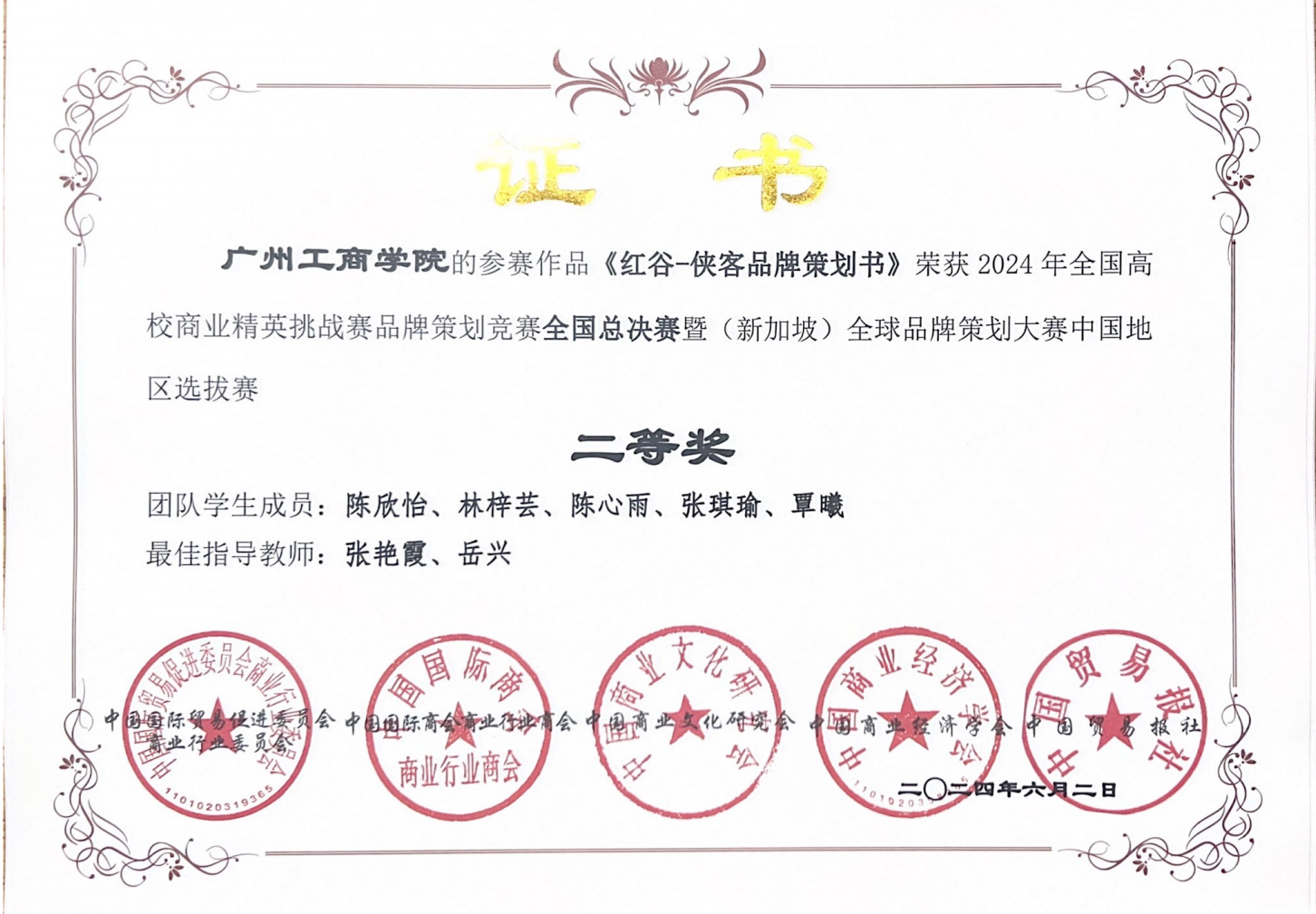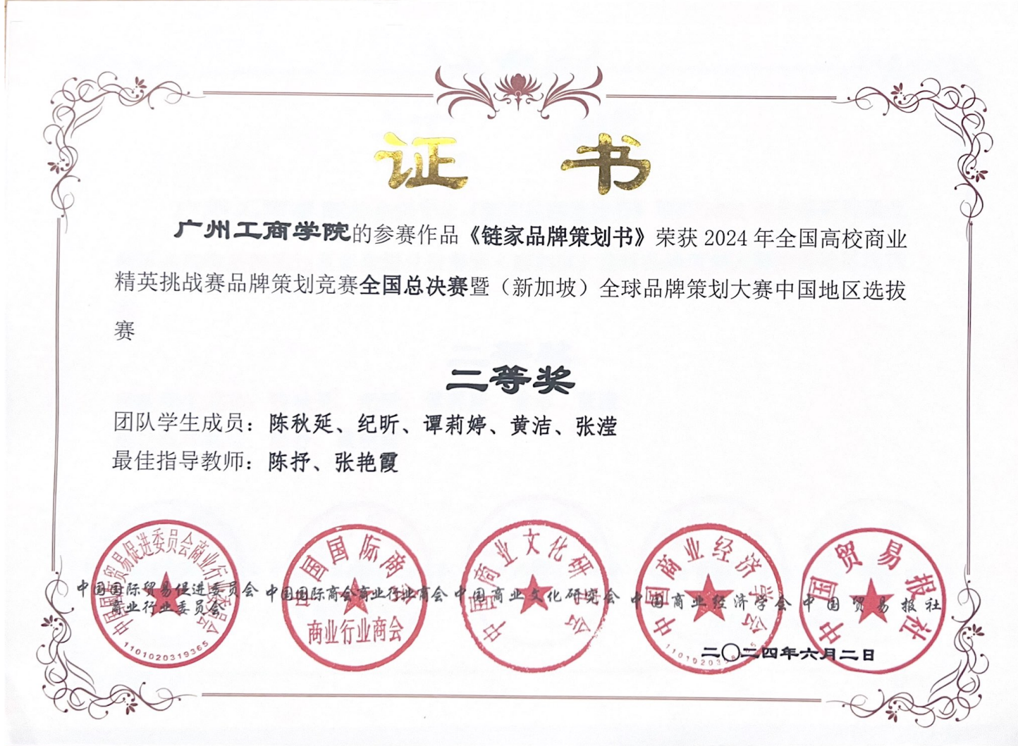 2024 年全国高校商业精英挑战赛品牌策划竞赛全国总决赛获佳绩