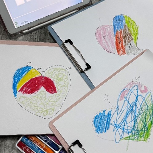 活动开始后,我们首先玩了心情菜谱的热身游戏,用不同的语调读给出的菜谱,自己对这个菜的喜欢与否在朗读的语调中体现出来,语调的变化也是情绪的变化所在;接着我们观看了《头脑特工队》小片段,在此片段中我们体会到情绪没有好坏之分,负性情绪也是被允许表达的,每一种情绪都是缺一不可的存在;然后我们学习管理情绪的方法——情绪涂鸦,在爱心上涂鸦不同颜色,代表自己不同的情绪,画好后标注出每种颜色的意义,给大家分享自己的感受;最后进行活动复盘,回顾如何正确看待情绪和情绪管理的方法。