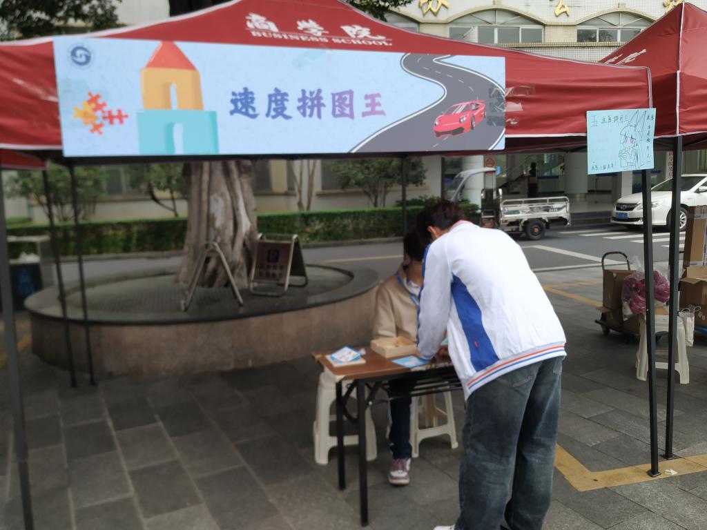 悦心传声筒活动以信封为媒介,连接了当下的自己与一年后的自己,也能将藏于心底的话语,通过信封转达给他人。该活动以信封为载体,传递出人与人之间的美好情感。红包猜猜看活动,展现了中华汉字的独特魅力,体现了大学生对中华文化的继承与弘扬。超级拼图王活动,则彰显了同学们卓越的动手能力和惊人的记忆力。每一个环节都经过巧妙构思,既考验参与者的综合能力,又带来了轻松欢乐的体验。参与者们兴致勃勃地穿梭于各个游戏区域,全身心投入其中,现场气氛热烈、欢声笑语不断。每当成功完成一个游戏,参与者就能获得一枚独特设计的印章,集齐五枚印章后即可参与抽奖,赢取各式实用且精美的奖品。这一富有吸引力的规则极大地激发了大家的积极性,无论是老师还是同学,都在游戏中积极互动、彼此协作、各展所长,努力争取集齐所有印章以获得抽奖机会。整场活动不仅营造了愉悦的游园氛围,更将“以德润心”的教育理念融入轻松愉快的体验之中,实现了寓教于乐的良好效果。