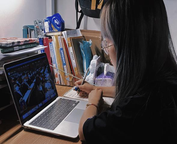图1:商学院党委书记林波同志收听收看大会
