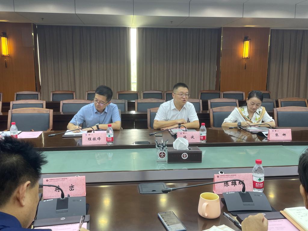 7月7日,商学院党委书记、院长林波,党委副书记、副院长张娜,副院长程振锋以及办公室主任李琳一行前往华南师范大学经济与管理学院学习调研。深入考察华南师大经管学院在学科建设、人才培养以及培训服务等方面的工作经验。