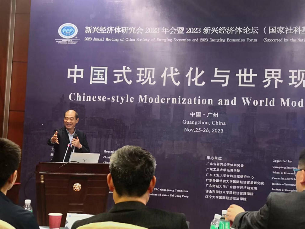 11月25日—26日,“2023年新兴经济体论坛”国际会议在广州白云国际会议中心举行。今年论坛的主题是“新的动荡变革期全球共同发展”。入会专家学者围绕“新兴经济体在新的动荡变化期的团结与合作”“一带一路高质量共同发展”“金砖国家发展繁荣”“去风险与全球双链重构”“数字中国与数字经济合作”“新型全球化与国际规则重塑”“制度型开放与高质量发展”等问题进行了深入讨论。