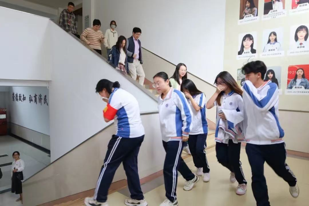 随着一阵急促的警报声响彻商学院大楼,消防演练正式拉开帷幕。烟雾弥漫中,老师们按照预定方案迅速分组,小组各司其职,在采取积极措施灭火的同时指引师生们撤离至集合地点并迅速清点人数,确保无人员遗漏。