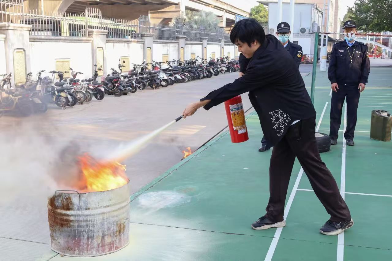 会后,参与演习的师生们通过轮流实操灭火器,亲身体验灭火流程,加深对消防安全知识的理解与实践。