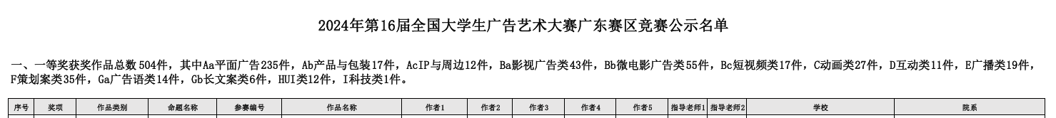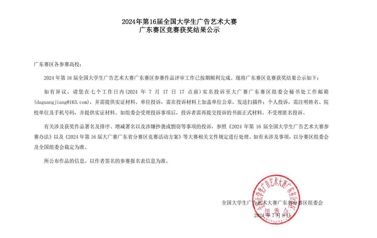 2024年7月8日,第16届全国大学生广告艺术大赛广东省分赛获奖名单正式揭晓。商学院学子凭借出色的创意与实践能力,在激烈的竞争中脱颖而出,共有4支参赛队伍荣获奖项,其中二等奖1项、三等奖3项,展现了学院广告艺术教育的丰硕成果。