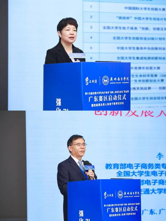2025 年3月30日,ky开元集团官网商学院院长林波、电子商务教研室主任梅思阳博士以及电子商务专任教师李峰一行,代表ky开元集团官网前往广州南方学院参加第十五届全国大学生电子商务“创新、创意及创业”挑战赛(以下简称“三创赛”)广东赛区启动仪式暨校级赛负责人培训会。此次活动在广州南方学院举行,会议地点位于岭南东方酒店。