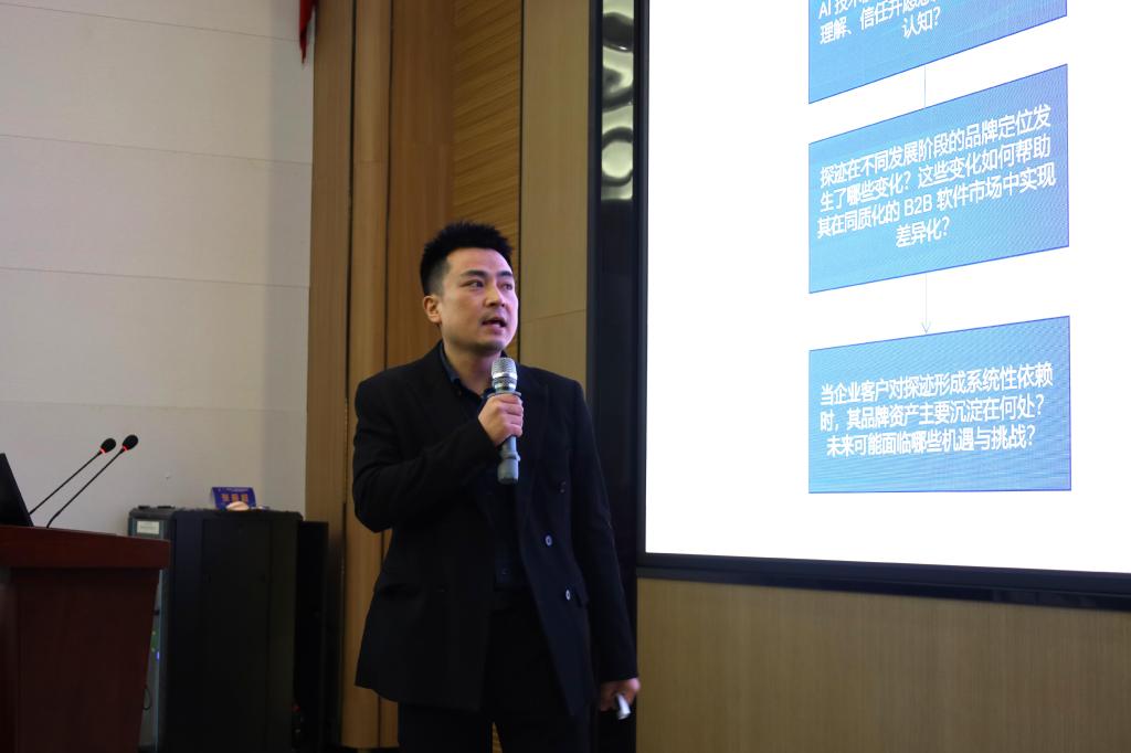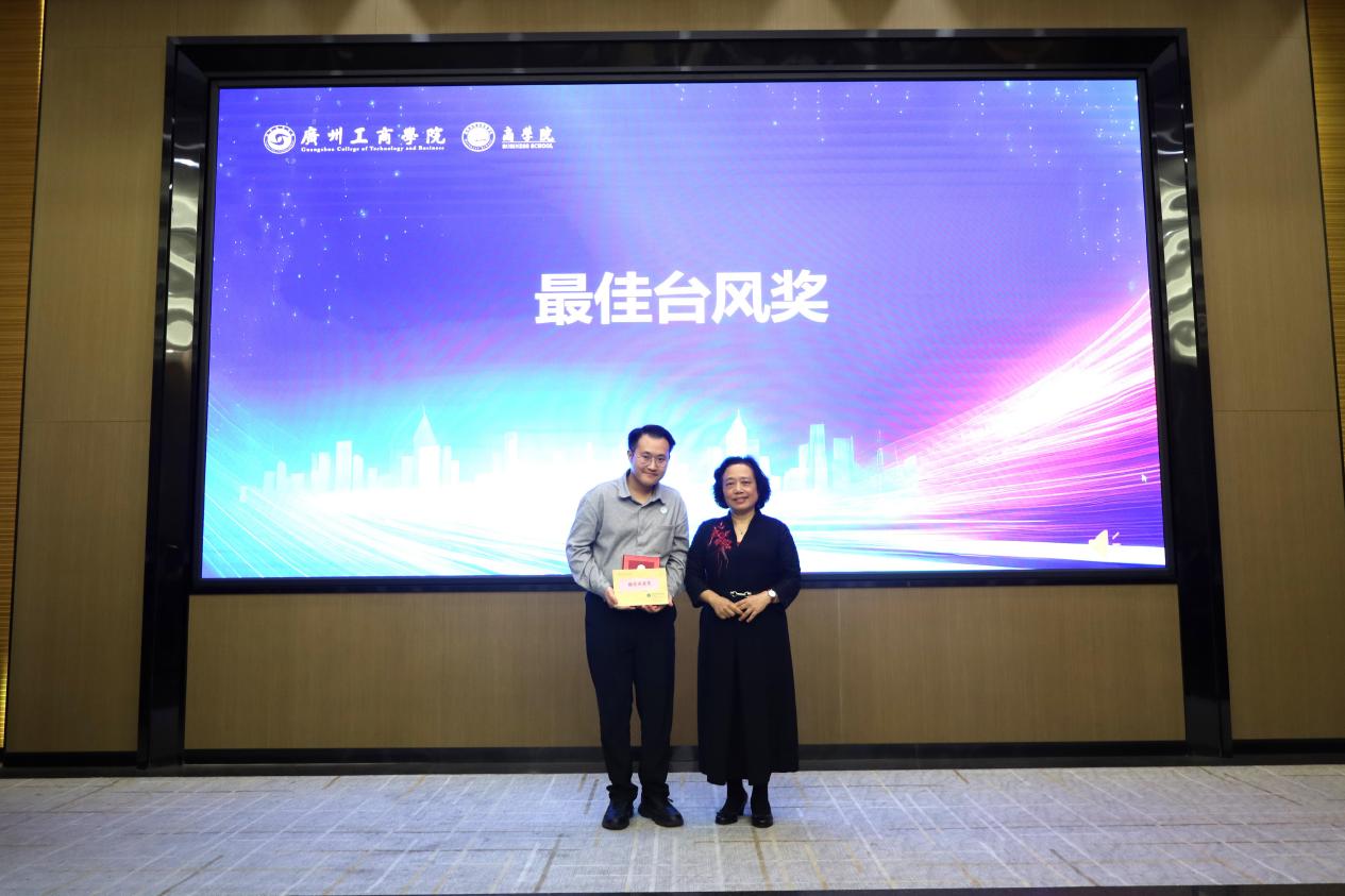 论坛的核心环节是品牌案例展示汇报。来自市场营销专业的10个优秀学生团队依次上台,展示了他们基于深入企业调研完成的品牌案例分析报告。这些案例聚焦国际、时尚、数智等前沿领域,体现了学生将理论知识应用于实践的能力。经过一下午的激烈角逐,最终评选出一等奖1名、二等奖2名、三等奖3名、优秀奖4名,最佳台风奖1名,最佳指导老师奖3名。其中,由岳兴老师指导的以周智扬同学为代表的第二组,凭借《被感知的东方美学:红谷皮具品牌之道》这一聚焦本土皮具品牌的深度案例,荣获一等奖。