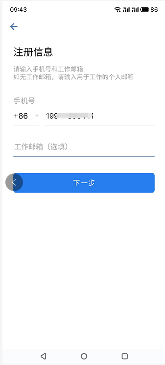 (1)打开企业微信,选择【手机号登录】,输入手机号码,点击【下一步】