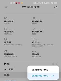 4.非苹果手机或平板连上无线网络后,打开设置,选择“WLAN”设置, 长按无线名称,选择“修改网络”,在“隐私”中选择“使用设备 MAC”,然后保存完成配置。