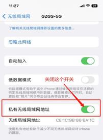 3.苹果手机或平板连上无线网络后,请关闭私有无线局域网地址功能;