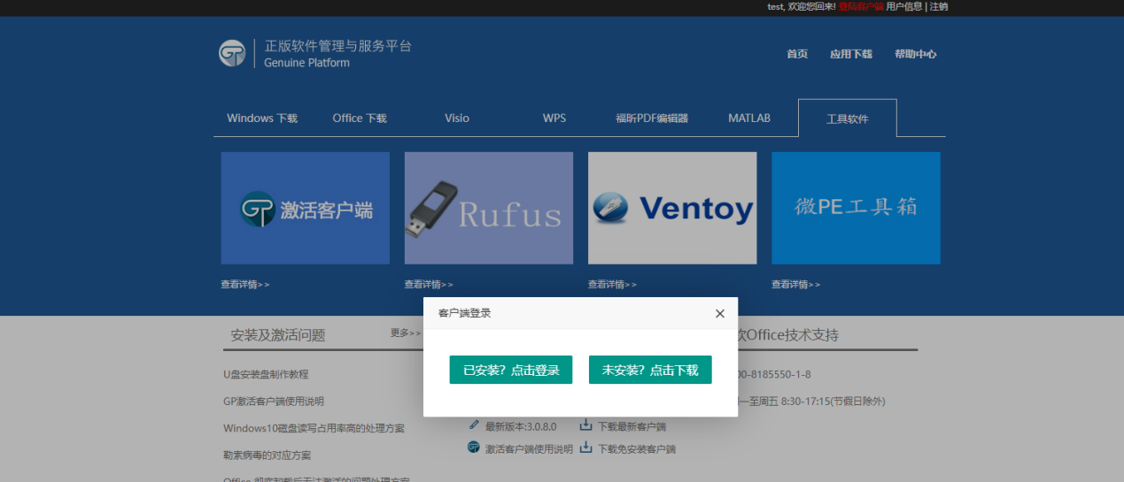 1) 点击页面右下角的“下载最新激活客户端”链接